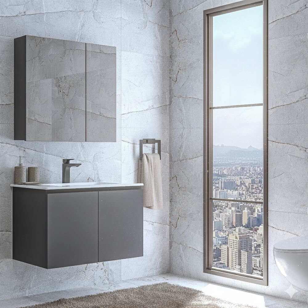 Alpu Ayna Dolaplı Banyo Dolabı Seti Antrasit 80 cm